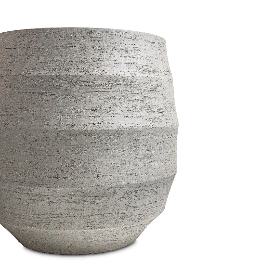 Crafted with a blend of crushed stone, it presents a sturdy, concrete-like appearance that seamlessly blends with its lightweight and resilient fiberglass-reinforced resin construction. This unique combination ensures durability while maintaining an elegant aesthetic suitable for both modern interiors and outdoor gardenscapes.