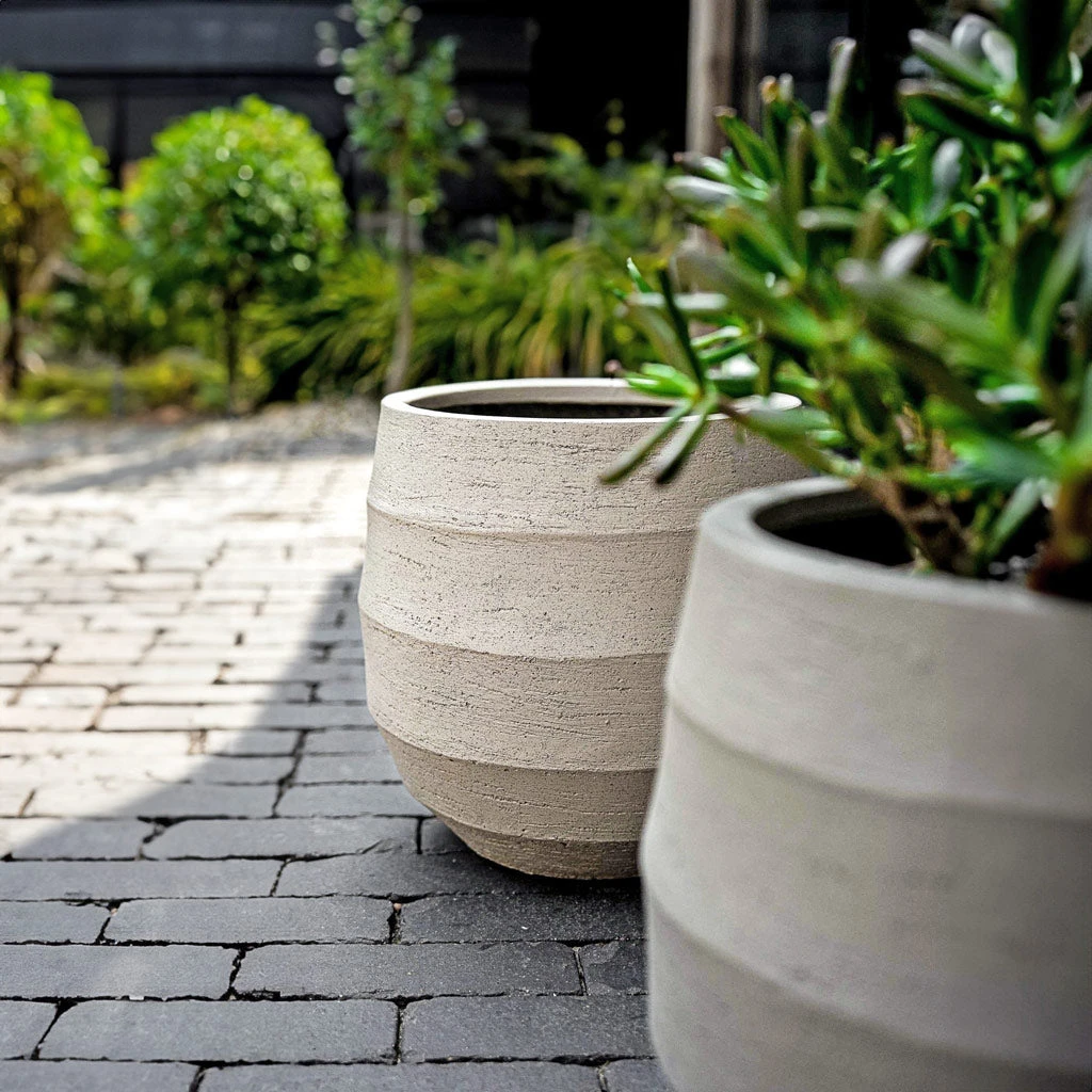 With its natural sandy greige colour, captivating concrete-look finish and contemporary rippled details, the Bordo Balloon Planter boasts a fusion of rugged charm and modern convenience in its design.