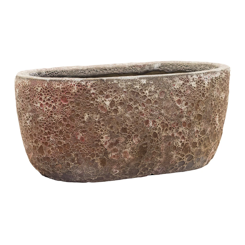 Handcrafted and fired in traditional wood-fuelled ovens, each Lava Oval Relic Planter features unique volcanic patterns in pink, red and white tones giving the appearance of an active lava flow. Its distinctive shape and texture will add a touch of unique nature-inspired style to any room.
